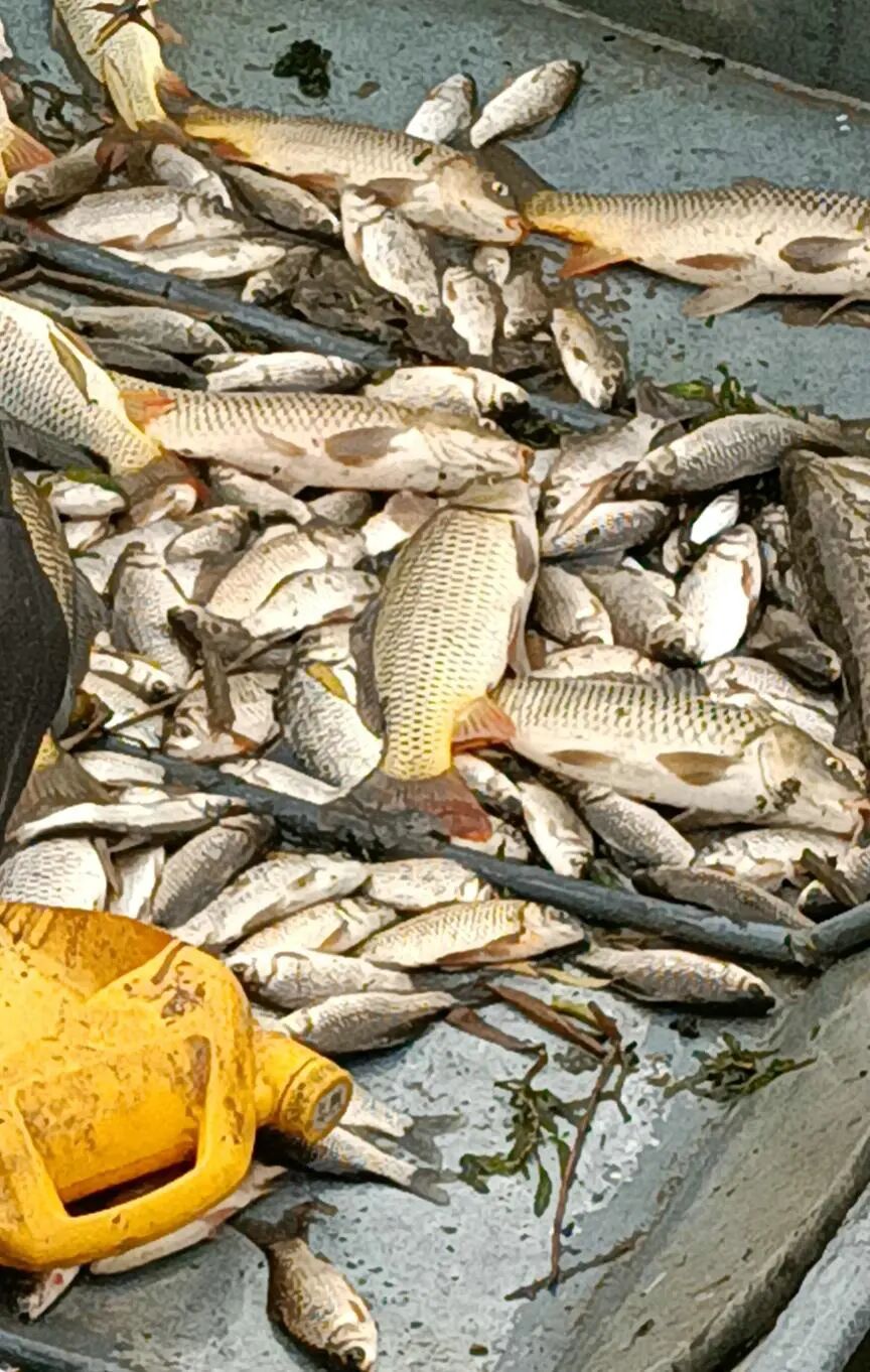 也难怪这位钓鱼人气愤了,这艘电鱼船所过之处,死鱼一片,不时有巴掌大的鲫鱼甚至几斤的大鲤鱼跳出水面。