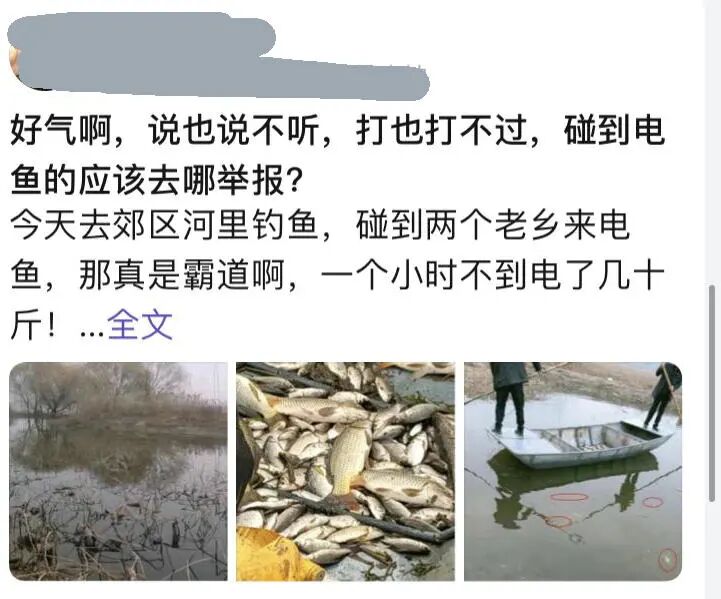 随后,这位钓鱼人也是将这一幕发到社交媒体上后无奈表示“好气啊,说也说不听,打也打不过,碰到电鱼的应该去哪举报?”