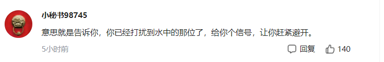比如就有一位广东网友称这位钓鱼人钓到死亡芝麻剑是“意思就是告诉你,你已经打扰到水中的那位了,给你个信号,让你赶紧避开”。