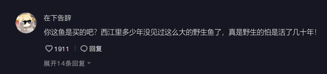 甚至有人直言“你这鱼是买的吧?西江里多少年没见过这么大的野生鱼了,真是野生的怕是活了几十年!”