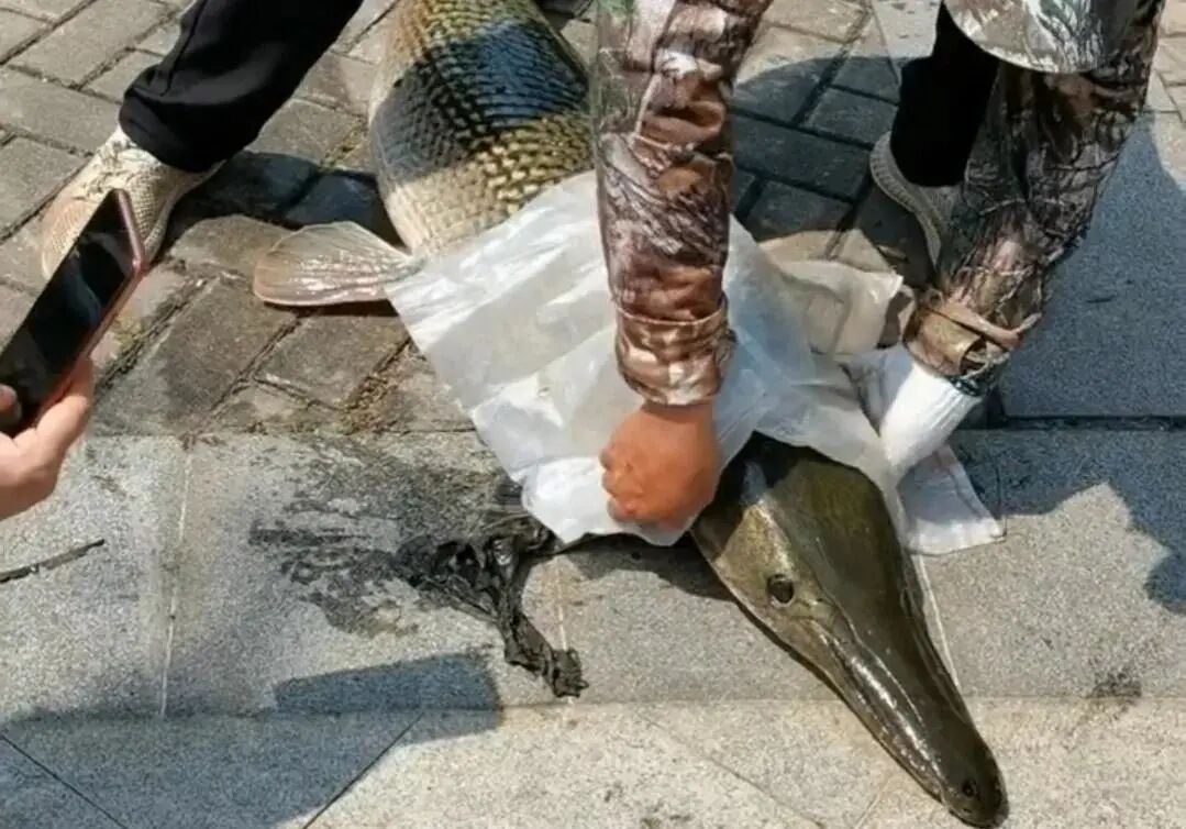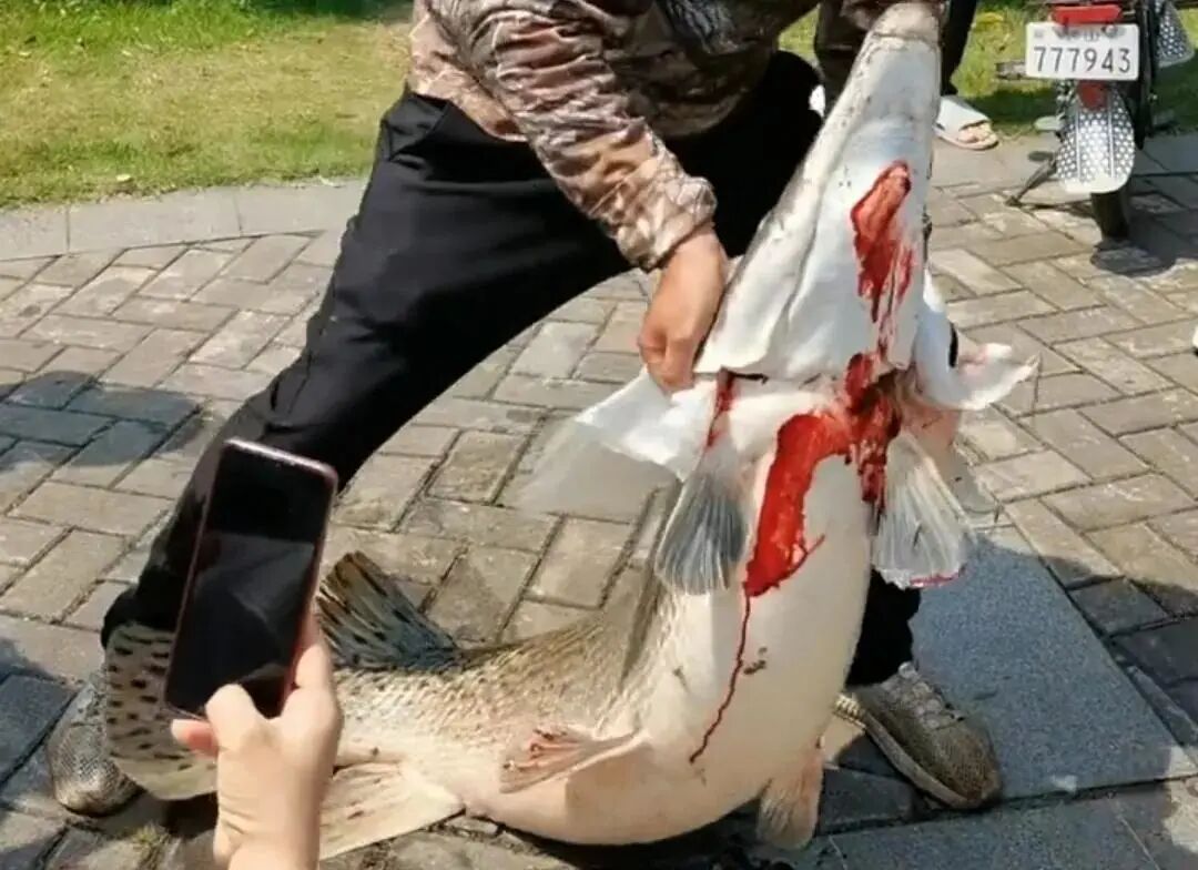 比如最近在广东佛山(南海),一位钓鱼人在频繁发现湖中出现大型黑影后,竟然设法钓起一条76斤的“大型肉食鱼”——疑似是被人放生而来,引起不小的轰动……