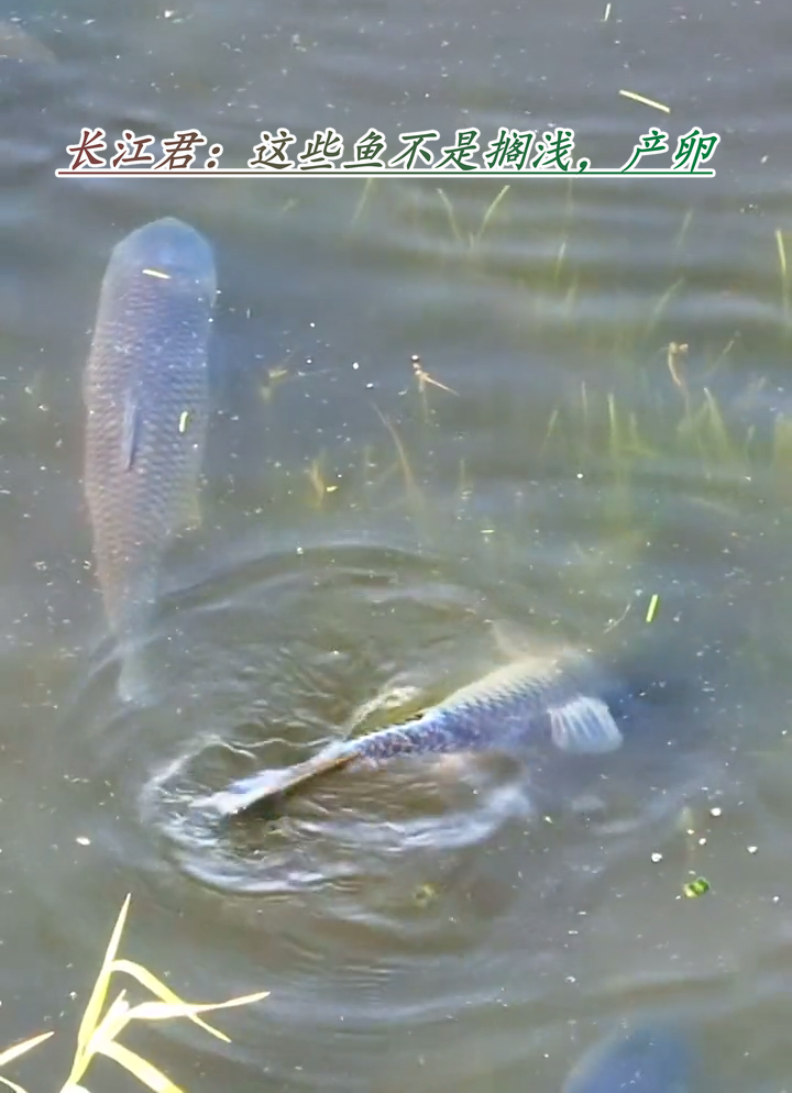 长江君:其实了解一些野生鱼繁殖习性的朋友就知道,这些看起来“被困浅滩”的各类鱼群,应该本身是“主动”游来这些草滩产卵的。