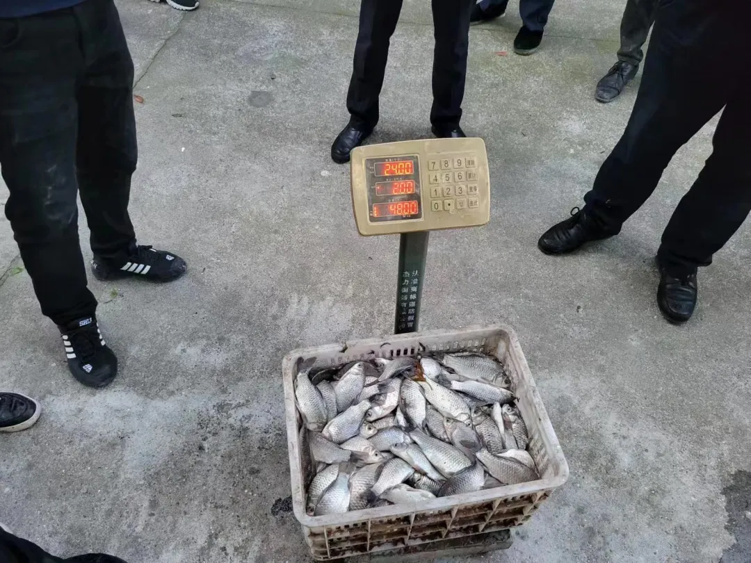 缴获300多斤野生鱼中的一部分