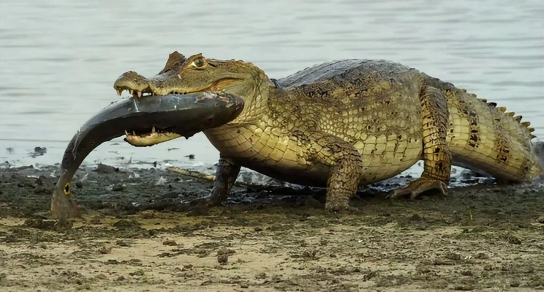 长江君:确实如此,据相关研究表明,鳄鱼一般不会有拖拽食物掩藏起来的举动,当它们捕获猎物后,不管是河里肥美的野鱼、水族,还是岸上的大型动物,它们都会选择直接吃掉,并尽可能多吃。