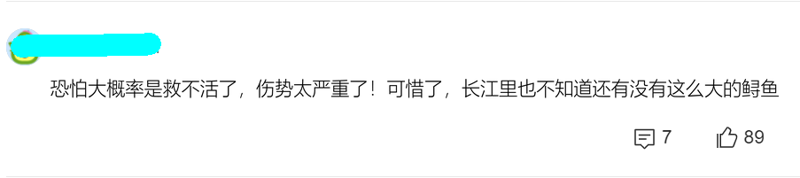 长江君:看得出来,不管是唏嘘还是感叹,大家也都是在为这条大鲟鱼祈福,不希望这条极罕见的长江鱼王就此陨落。