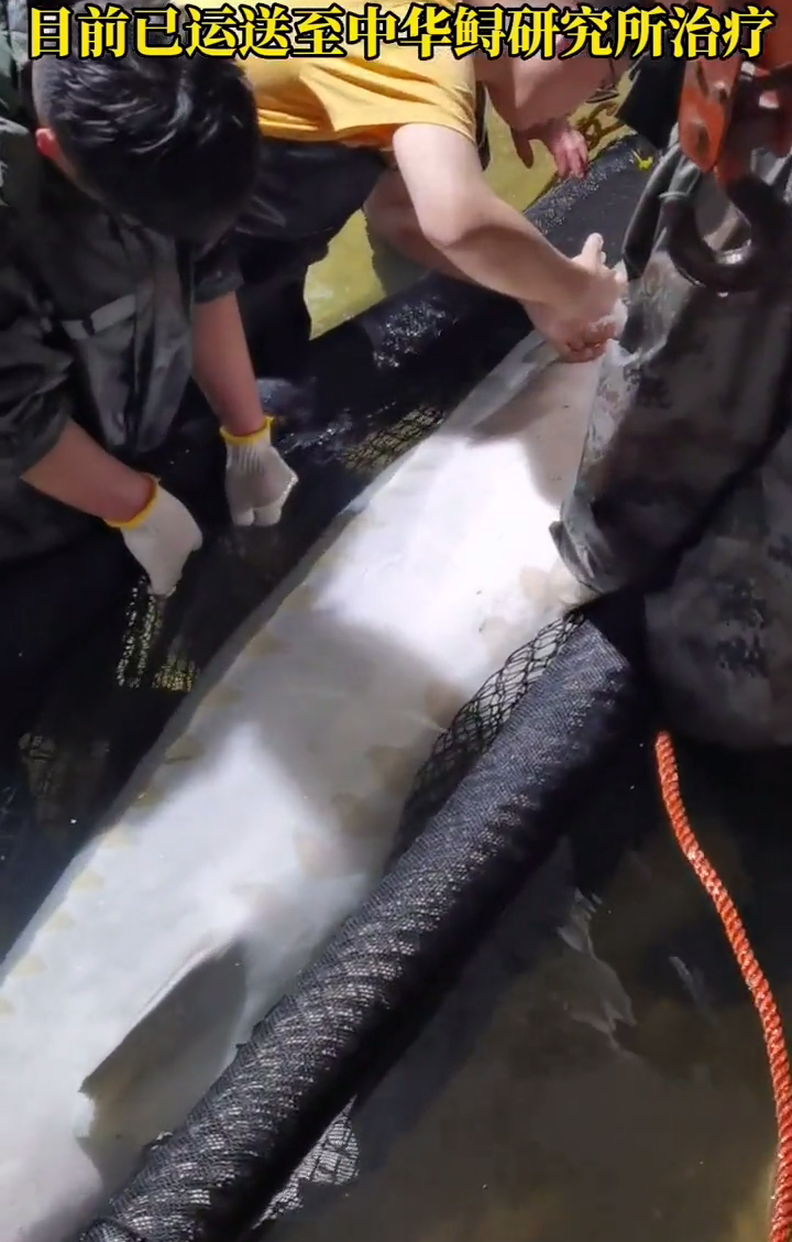 而在工作人员救助、运输它的过程中,这条大型中华鲟也几乎不怎么动弹,可以说其活性程度让人担忧,在这种情况下,确实救治起来难度非常大。