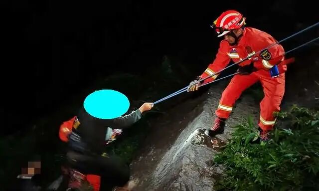 而因为落差太高、山崖陡峭,等到这位钓友最终被救援上岸,天都已经亮了,可见整个救援过程的艰难。