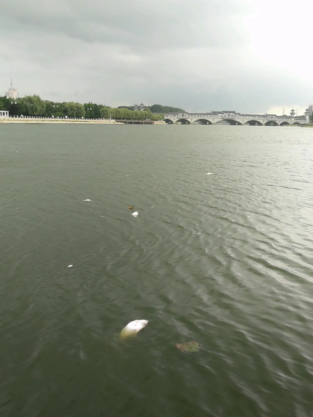 从这位曲阜钓友拍下的画面可以看到,远近的河面都有死鱼漂浮,以数斤左右的鲢鳙为主,也有少量小型死鱼,似乎是鲫鱼和餐条鱼等。