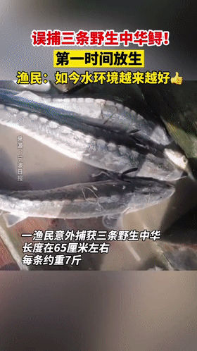(以上被渔民误捕的中华鲟,都被渔民们第一时间放生,不得不说现在大众的生态保护意识大为提升了。)