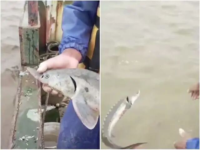 作为常年在江上讨生活的“老渔民”,下面这几位浙江余姚的渔民在发现自己捕了几条“怪鱼"之后,非常警觉——当时他们就认为这很可能是长江里的保护动物中华鲟,于是立即就在船上将它们放生了。