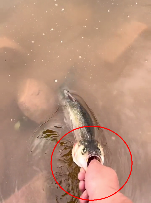 (从其他钓友拍下的画面看,这条翘嘴鱼嘴里确实没有鱼钩鱼线)