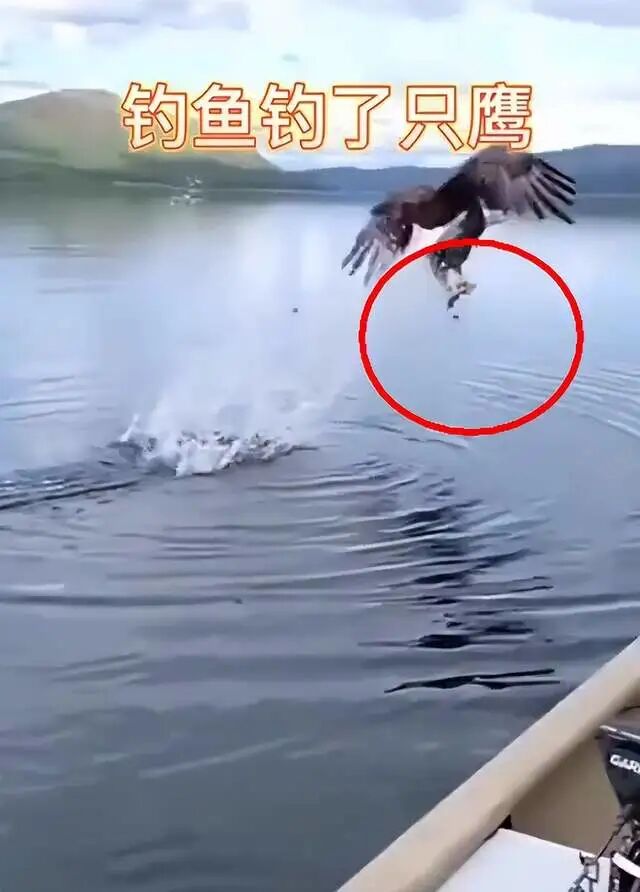 长江君:从这只大鹰的外形判断,应该是一只大型猛禽——白头海雕,也即“美国国鸟”,因此这一垂钓奇闻,大概率是发生在美国某个大湖中。