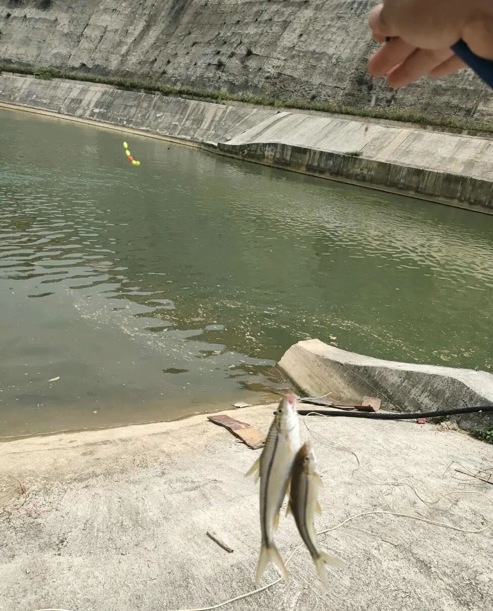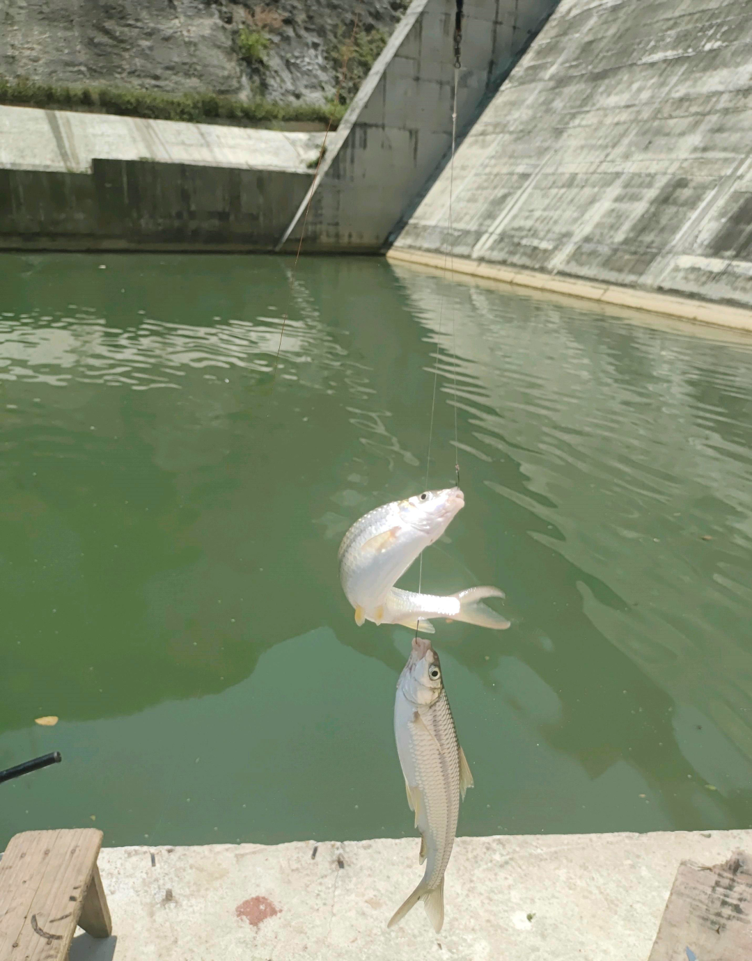 比如下面这位广西百色(田东)的老乡,在山里一处水坝下钓鱼时,就发现一种从未见过的“大型麦穗鱼”......