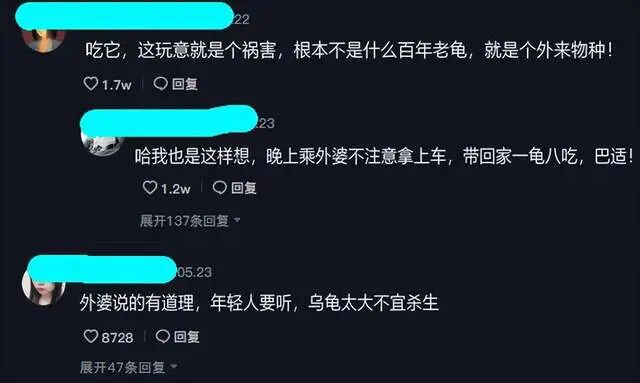 这位小伙在社交媒体上咨询大家该怎么处理这只大龟——却没想到大多数网友都纷纷表示"吃它,这玩意就是个祸害,根本不是什么百年老龟,就是个外来物种!"