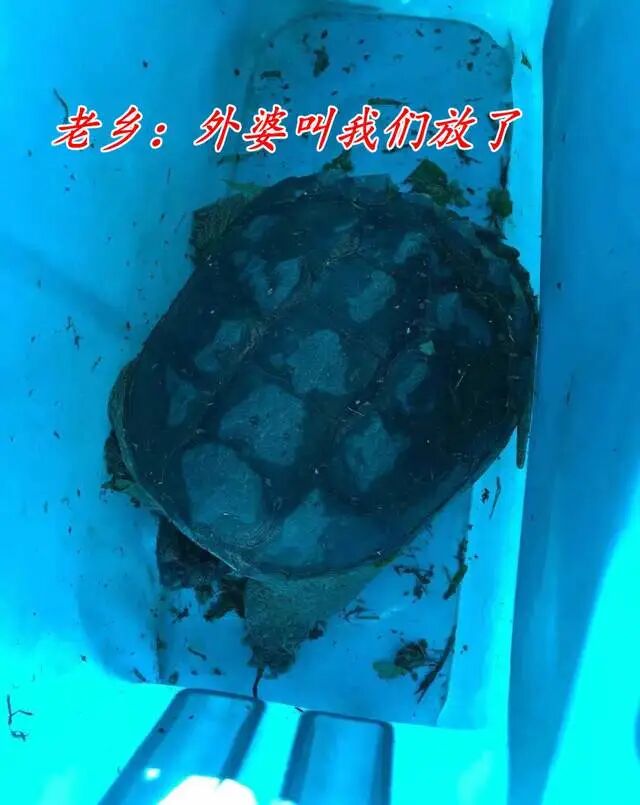 但令人没想到的是,这位小伙将这只乌龟拿到外婆家,外婆看了之后却叫他放到河里去,因为“这么大的乌龟有灵气,不要吃!”