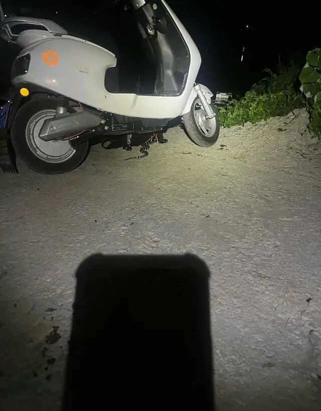这条银环蛇忽然游过来,可能是被人体和电动车的余温吸引(冷血蛇类夜晚大都有趋光、趋热习性)。