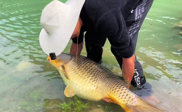 最后,希望这条重获新生的“老成精的巨鲤”能顺利在河中水产,继续其剩下的生命之旅,不要再给钓鱼人钓上来了......#户外钓鱼#