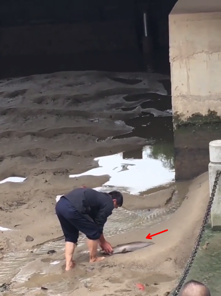 大量钓鱼人、路人下河捉鱼——网友拍摄