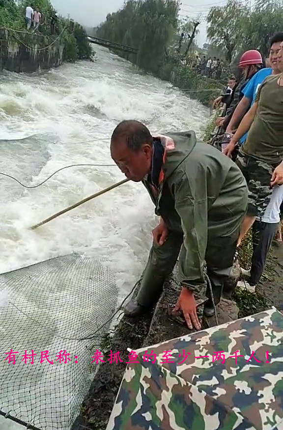 许多得到消息的居民也是早早等在下游泄洪道,准备好了抄网、鱼笼、抛网等等各种渔具,纷纷准备“抢鱼"。