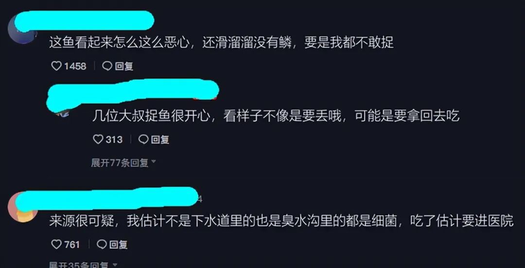原来,这些塘鲺鱼黑脏的外形,让许多网友看后表示“这鱼看起来怎么这么恶心,还滑溜溜没有鳞,要是我都不敢捉”;