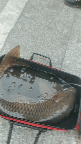 原来,是因为钓鱼人在河道钓鱼时碰上了一条体型健硕的大鲤鱼,估计有30斤往上,在这样一条市内河道里可算是个“稀罕物”, 甚至有路人惊呼是一条“鲤鱼王”。