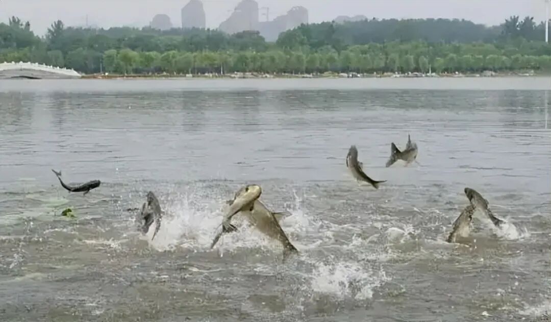 事实上,在每年的雨季因为江河湖泊涨水和频繁的降雨,类似的鱼群(主要是鲢鱼)乱跳的现象,在各地都经常发生。