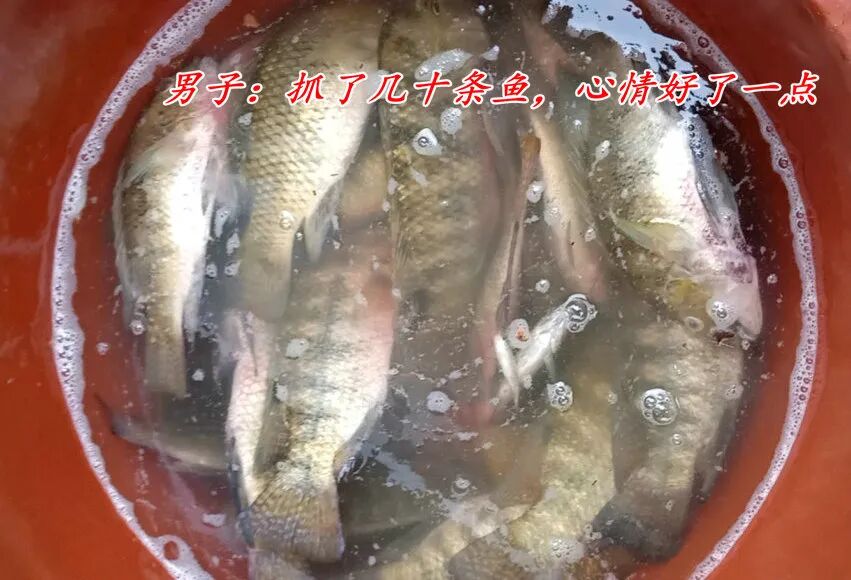 让人没想到的是,这个刚积水没多久的地下车库中,竟然鱼群很多——这位男子拿着抄网在车库中捞了没多久就捞了几十条鱼(大多是罗非鱼),非常的开心,并直言“抓了几十条鱼,现在心情好多了。"