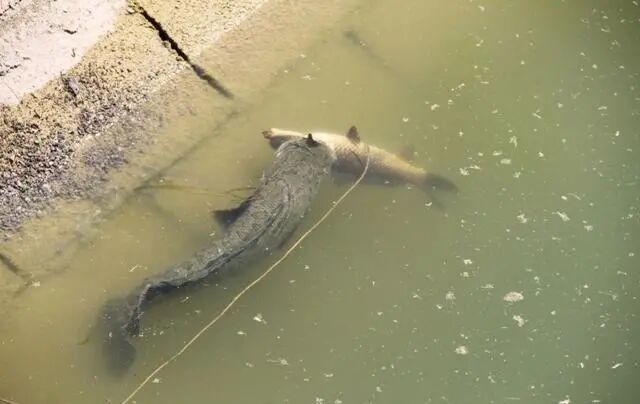 “我鱼也不钓了,就在河边看它,这玩意也不跑,关键鱼它也吞不进去,我看它使劲吞了好机会,但是鱼太大了,就卡在嘴里,又舍不得吐出来……“