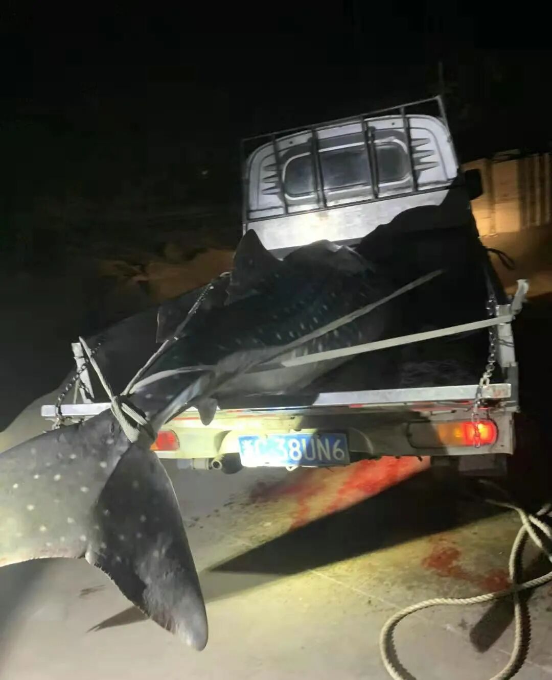 长江君:大渔湾真的出“大鱼”了,而且是一条需要用到小货车来拖的“庞然巨物”。