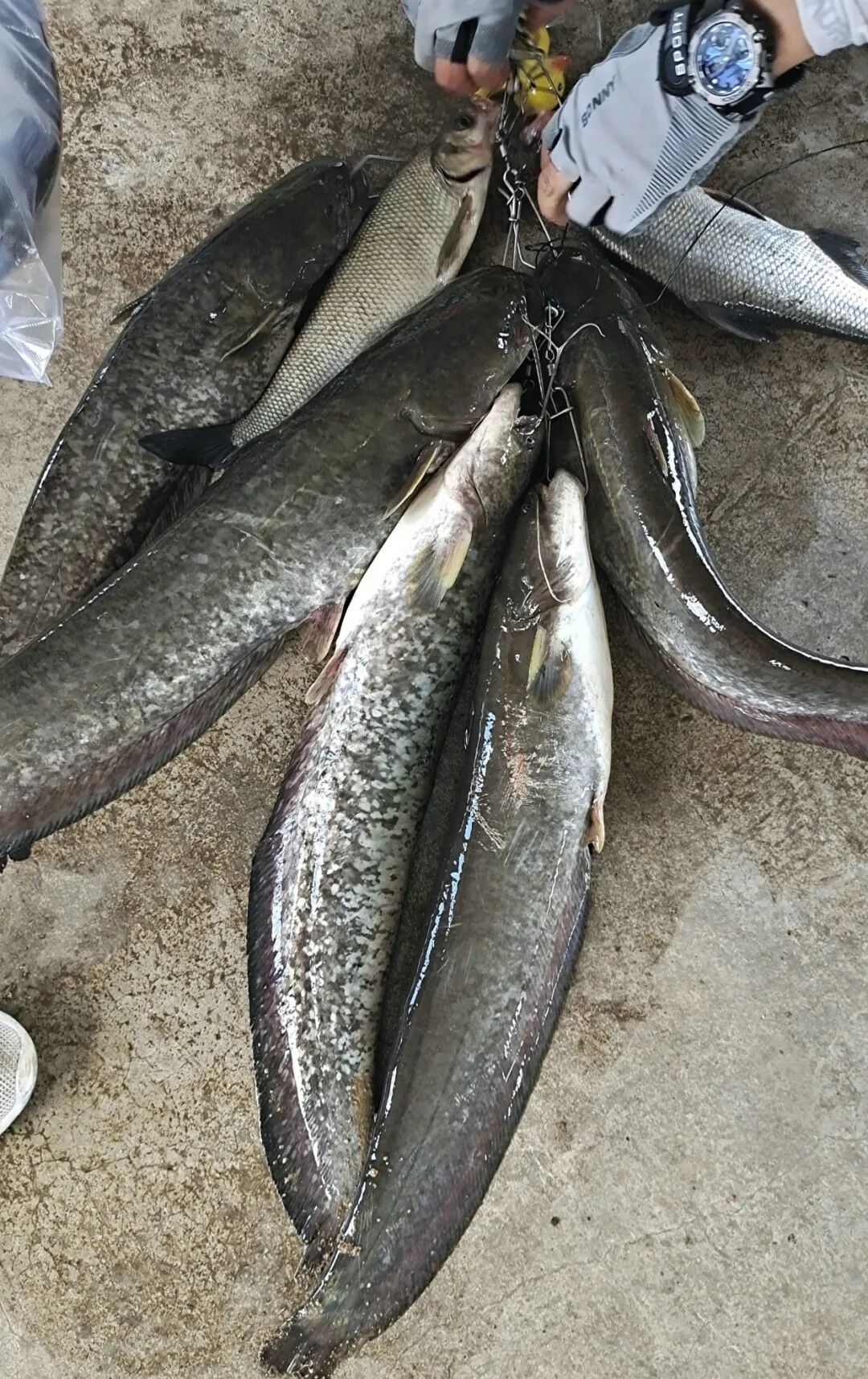 然而没想到翘嘴没钓到,却碰上了“鲶鱼窝”,频频钓上大鲶鱼……
