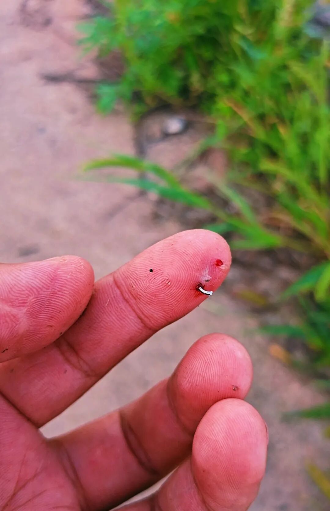 这位小伙后怕表示,一开始感觉就是发蒙,随后实在疼得受不了,仔细一看整个鱼钩的钩身,已经几乎全部扎进他手指里。