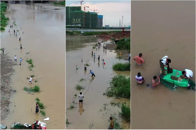 长江君:洪水往往会冲来大量鱼群,因此在我国民间,每年的汛期居民们聚集江河边热闹地钓鱼、捕鱼,已经是一种历史悠久的“人文现象”。