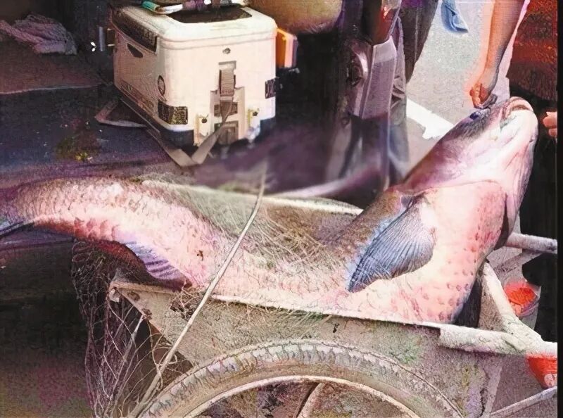这里就以鳙鱼为例。2020年10月,湖南某水库曾捕捞上来一条100多斤的巨型鳙鱼,估计年龄在30岁以上。而在2021年8月,美国一名男子捕获了一条重114斤的巨型鳙鱼,躯干部分比成年人的胸围还粗,一举打破了之前的世界纪录。