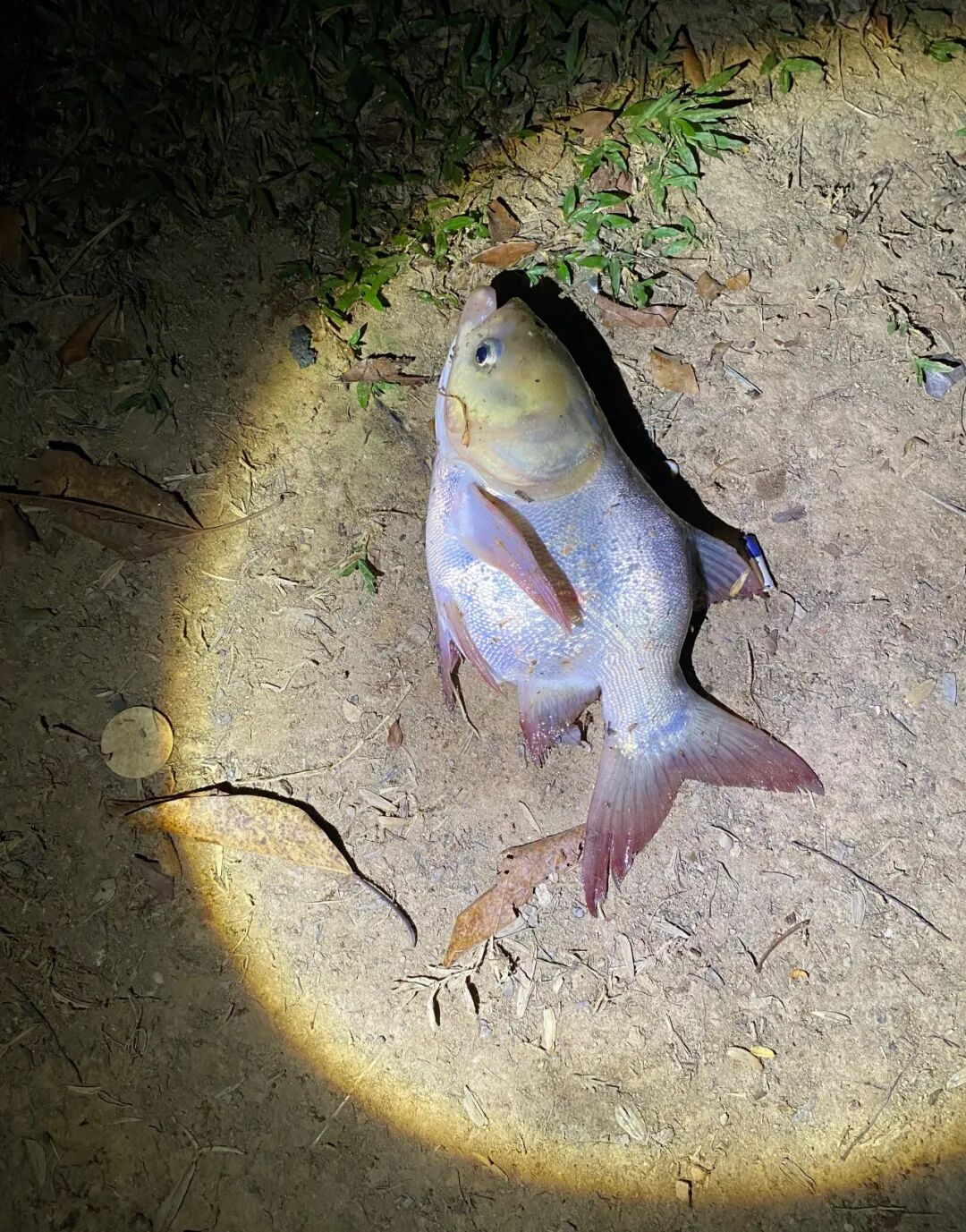 这位广州的钓鱼人(@11°俯冲)称,当晚他一个人到珠江边夜钓,使用的是5.4手竿,在他的预想中,这个季节鲫鱼、大罗非鱼和黄辣丁应该都很好钓。