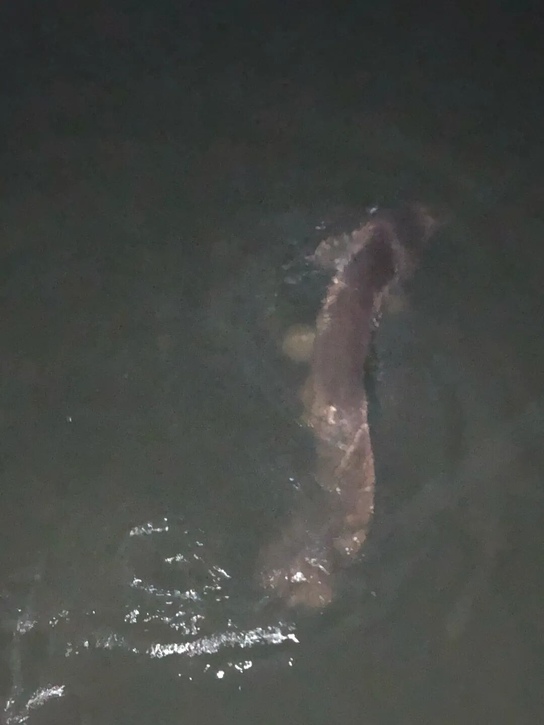 夜晚“黑水”里钓起1.2米长乌黑大鱼