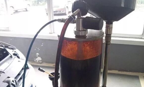 抽机油通过真空抽油机,把抽油管通过油尺处插入油底壳底部,从而把废机油抽出到容器内。