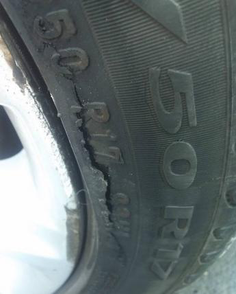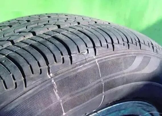 解决方法:这种情况通常都是轮胎使用时间较长,几乎到了轮胎的寿命,而且刮出30mm以上的裂纹,并起皮。不要犹豫,赶紧换掉!