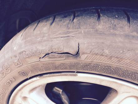 解决方法:接近于轮毂,情况严重,也是要赶紧换新轮胎!
