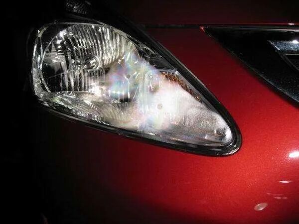 而如果透镜内壁出现大面积的雾气凝结并冷凝为水滴下流,积存在车灯内部,长时间、多次使用车灯时,随着温度升高,雾气又会大面积附着到配光镜内表面,此现象应判断为进水。