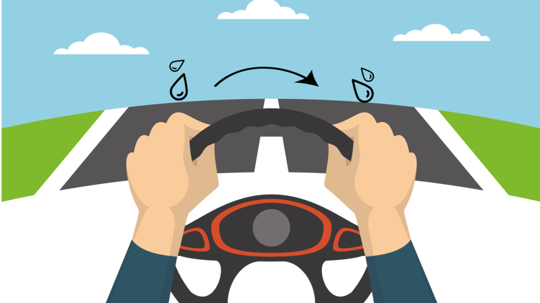 原因二:在匀速行驶的过程中,明显感觉车跑偏道路一边,需要用手一直握住方向盘,控制直行。