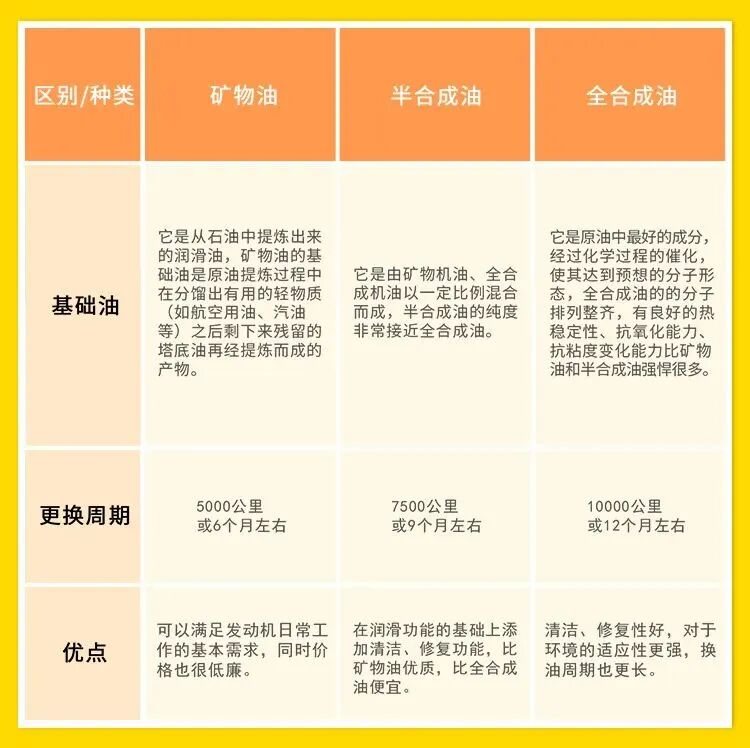 矿物油、半合成机油和全合成机油能够工作的温度范围有所不同,且能够保护发动机缸体和零件的效果也有所不同。