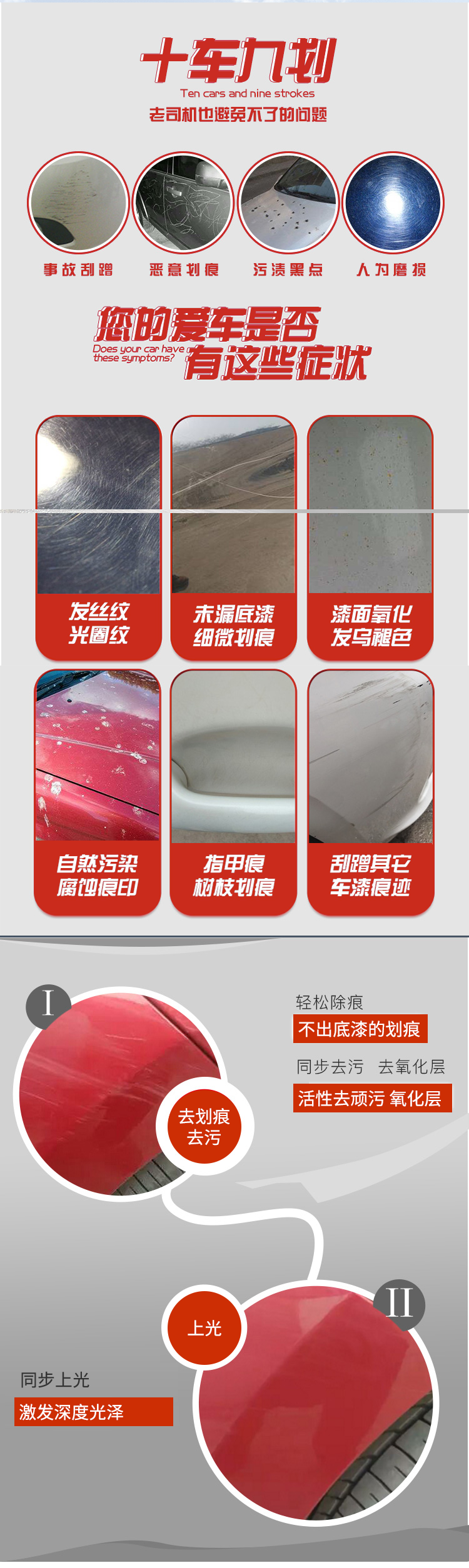 划痕蜡可以研磨掉清漆层上的细小划痕或者附着在表面车漆之类污渍。