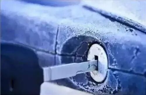 遇到这种现象,用打火机将你的车钥匙烧热,然后将高温的钥匙轻轻插进锁眼里,锁眼的冰遇高温后即刻融化,或者使用吹风机对准锁芯猛吹阵热风,一会就能打开。另一种方法就比较常规,用吸管对准锁眼吹气,你气息中的高温会将冰冻很快融化。