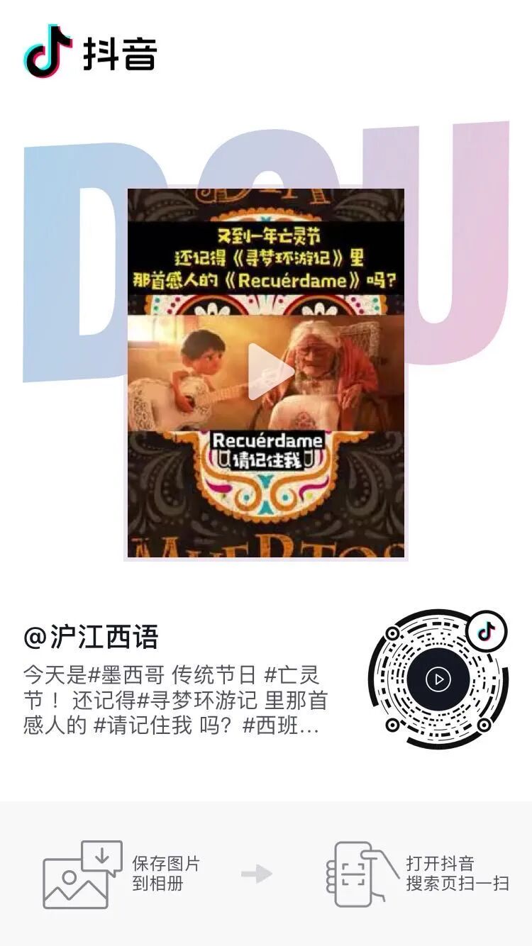快来抖音搜索“沪江西语”,重温寻梦环游记带给我们的感动吧!