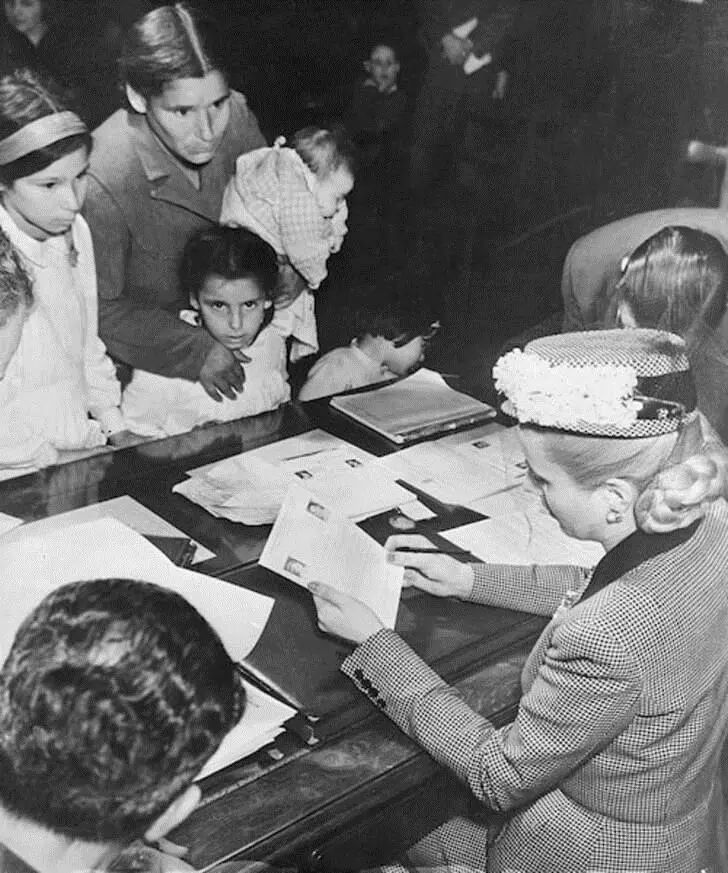 除了成立“EvaPerón基金会”以消除阿根廷的贫困状况,她还积极为女性谋求政治权利。在她的努力下,1946年8月21日,新的妇女选举权法案得到批准,该法律确认了男女之间在政治上的平等。此外,她还成立了由女性选民组成的政党——佩隆党。