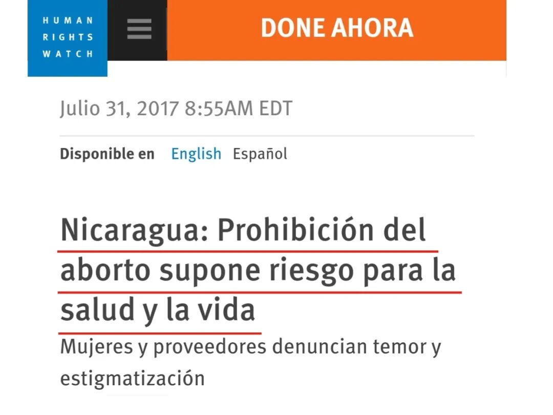 而在洪都拉斯和萨尔瓦多,堕胎在任何情况下都是犯罪,在尼加拉瓜同样如此。国际人权观察组织在其关于尼加拉瓜人权的第一份报告中,谴责该禁令“对女性的健康和生活产生了毁灭性的影响”。