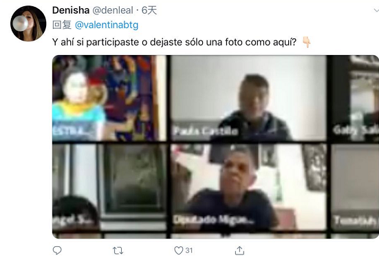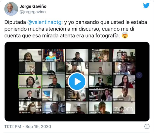 本来以为事情应该就这么过去了,可她的同事Jorge Gaviño却因为感到自己的发言没有被尊重,而直接在Twitter上@Valentina来指责她在视频会议用照片代替本人的行为。他气愤地说:“@valentinabtg议员:我本以为你是在认真听我的讲话,但没想到那个专注的眼神却来自一张照片。(扎心了老铁)”结果,墨西哥议员用照片开视频会议的事情人尽皆知。