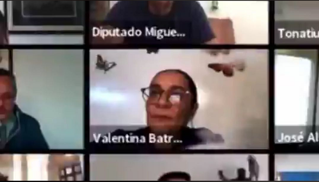 但是这场紧张的会议开到一半的时候,Valentina Batres Guadarrama的画面上突然出现了两个她!