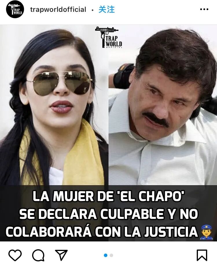 2019 年,当Joaquín Guzmán Loera(即el Chapo)在纽约法庭上因贩毒、使用枪支和洗钱等十项罪名被定罪时,坐在Emma Coronel Aispuro旁边席位的人给她递去了手帕,但她并没有流泪:“这里还没死人呢。”一句简单的言语就足以透露出这位因拥有及腰长发和魔鬼身材而被称为“墨西哥卡戴珊”的女人的剽悍。