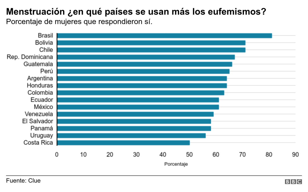 "Juana la colorada", en Colombia; "me cantó el gallo", en Puerto Rico; y "Andrés (el que viene una vez por mes)", en Argentina son algunos de los ejemplos que se utilizan en América Latina para evitar decir menstruación.